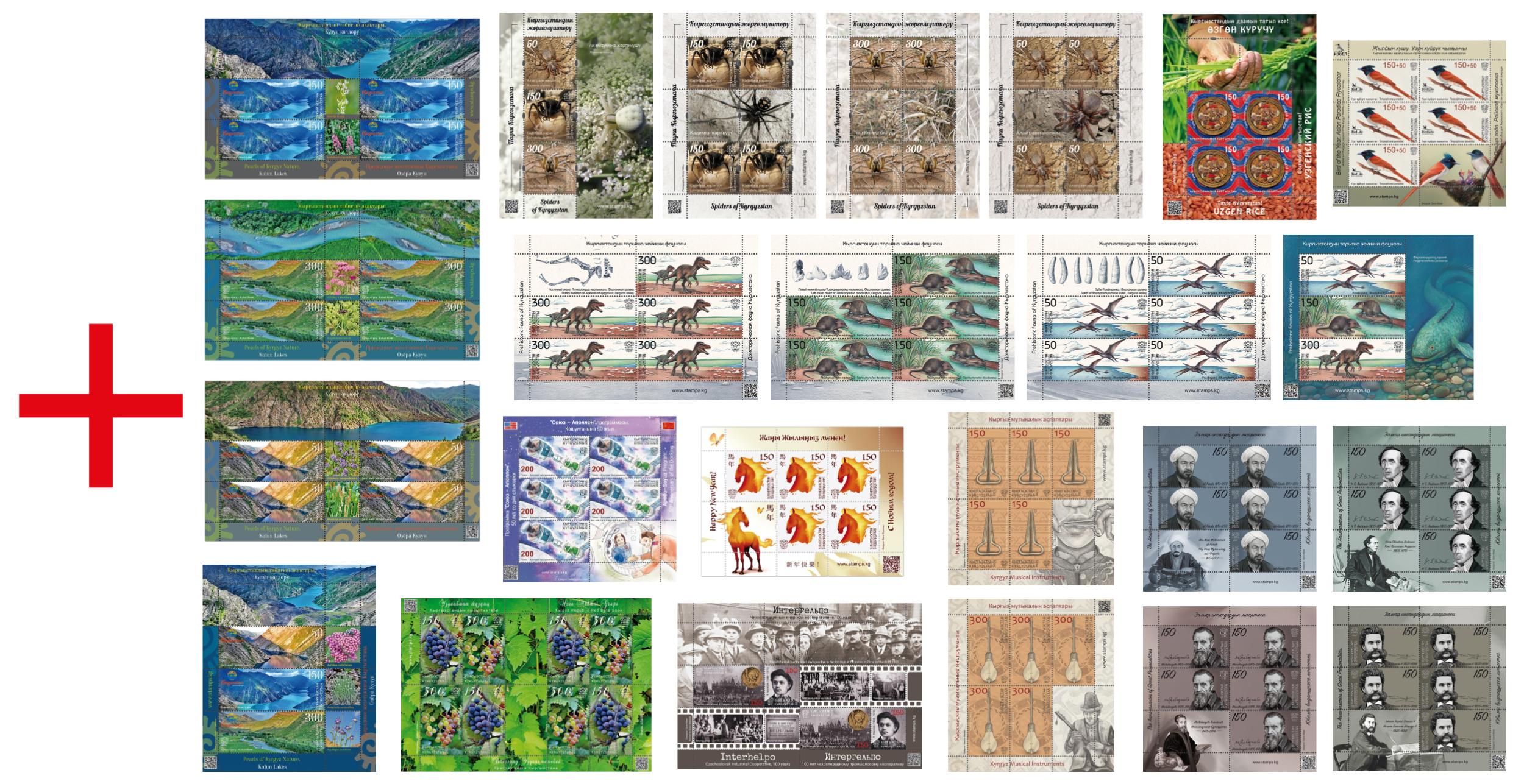 Cancelled set of all stamps, collective and souvenir sheets issued in 2022Show detailsSize (mm) 200.00 x 140.00 Face value (KGS) 2 200 Price Quantity 1540.00 KGS