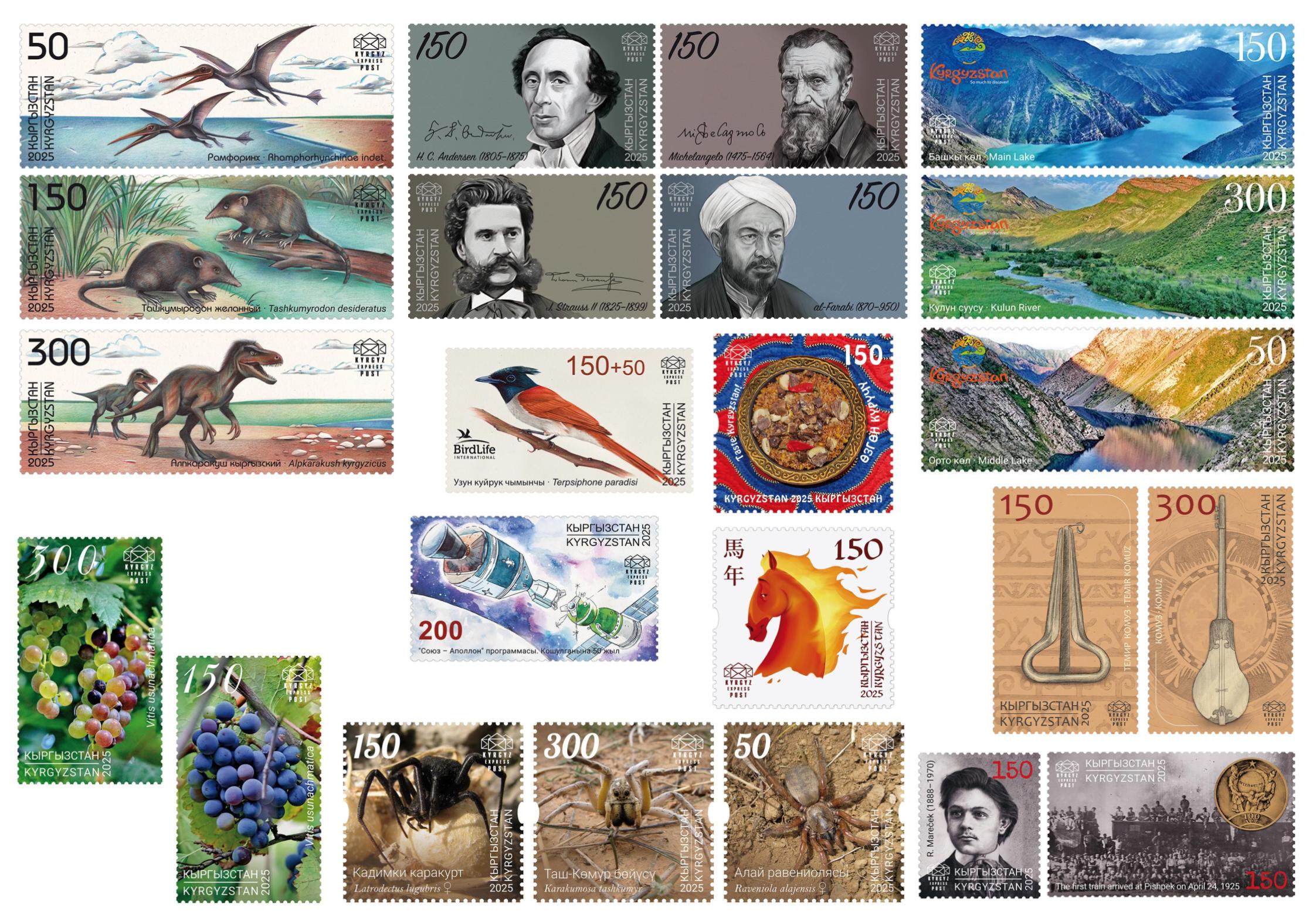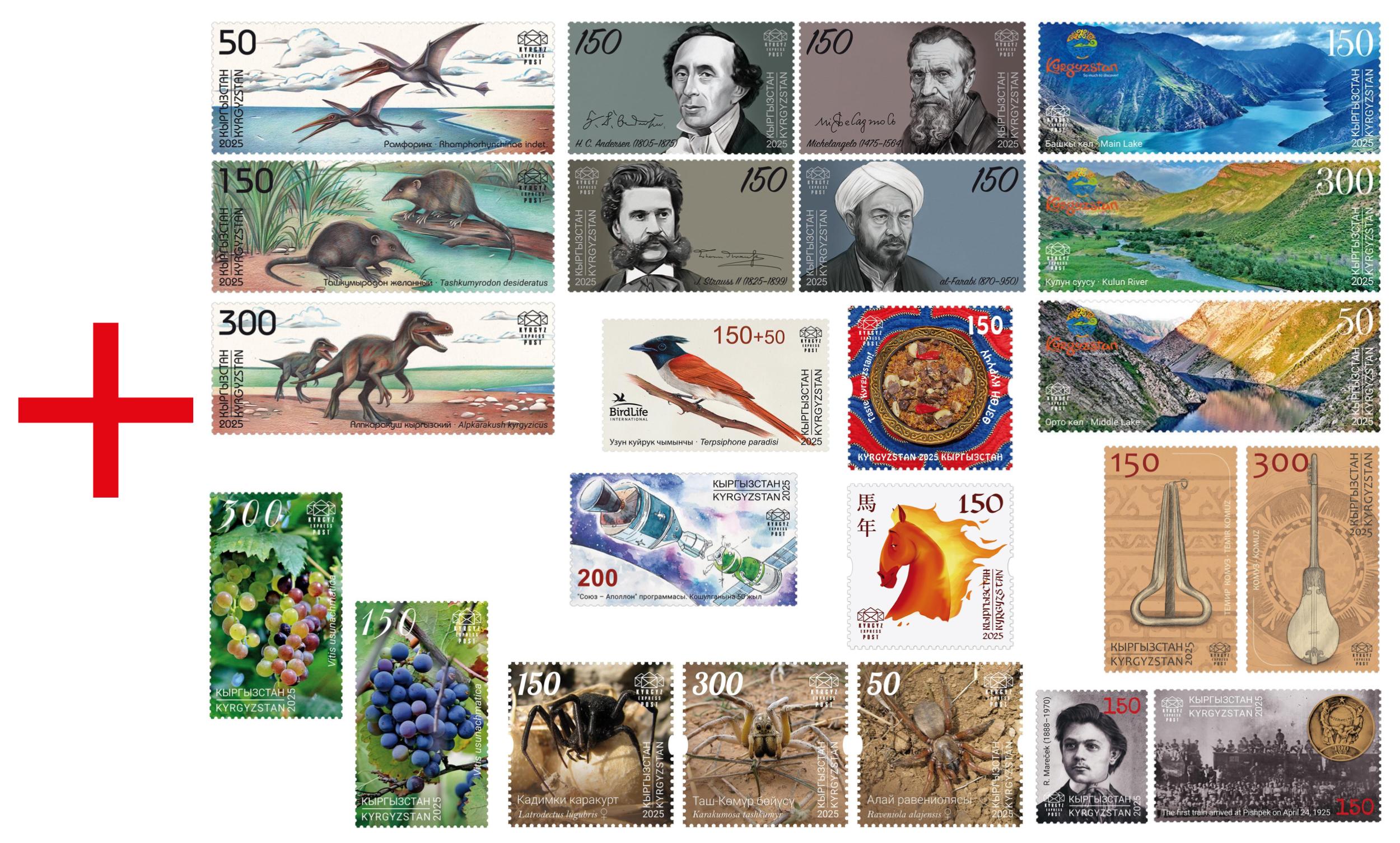 Cancelled set of all stamps, collective and souvenir sheets issued in 2025Show detailsSize (mm) 200.00 x 140.00 Price Quantity 3850.00 KGS