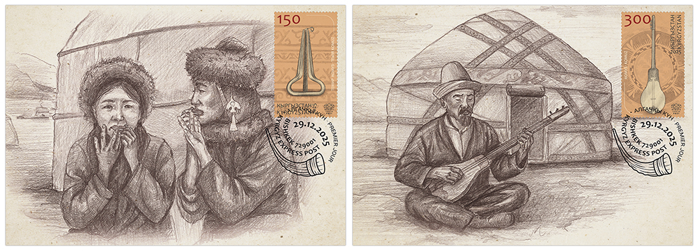 On December 29, 2025 the Ministry of Digital Development and Innovative Technologies of the Kyrgyz Republic puts into circulation a series of Kyrgyz Express Post postage stamps: "Kyrgyz Musical Instruments".