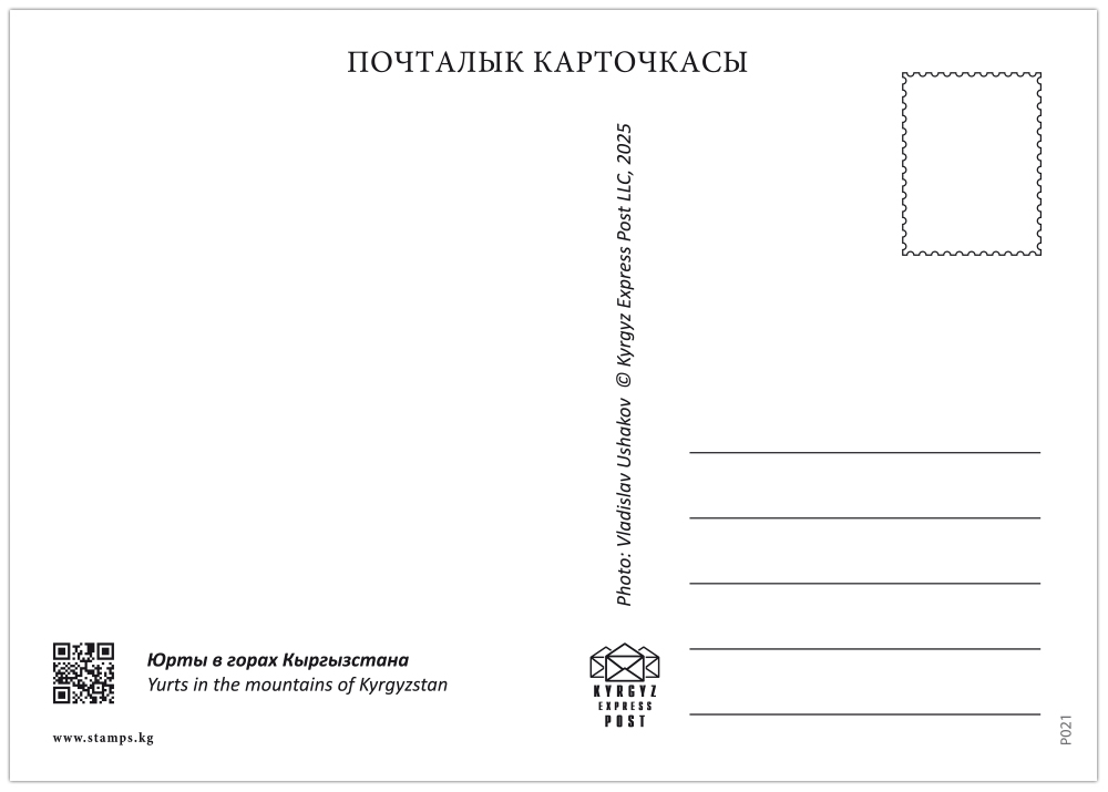 Почтовая карточка. P021. Юрты в горах Кыргызстана.